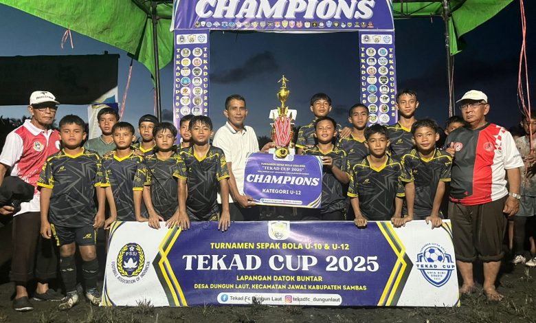 Jawai-Today. Sekolah Sepak Bola (SSB) Tebas Sungai berhasil menorehkan prestasi gemilang dengan meraih gelar juara pada Turnamen Tekad Cup U-12 Tahun 2025 yang berlangsung di Lapangan Dungun Laut, Kecamatan Jawai.